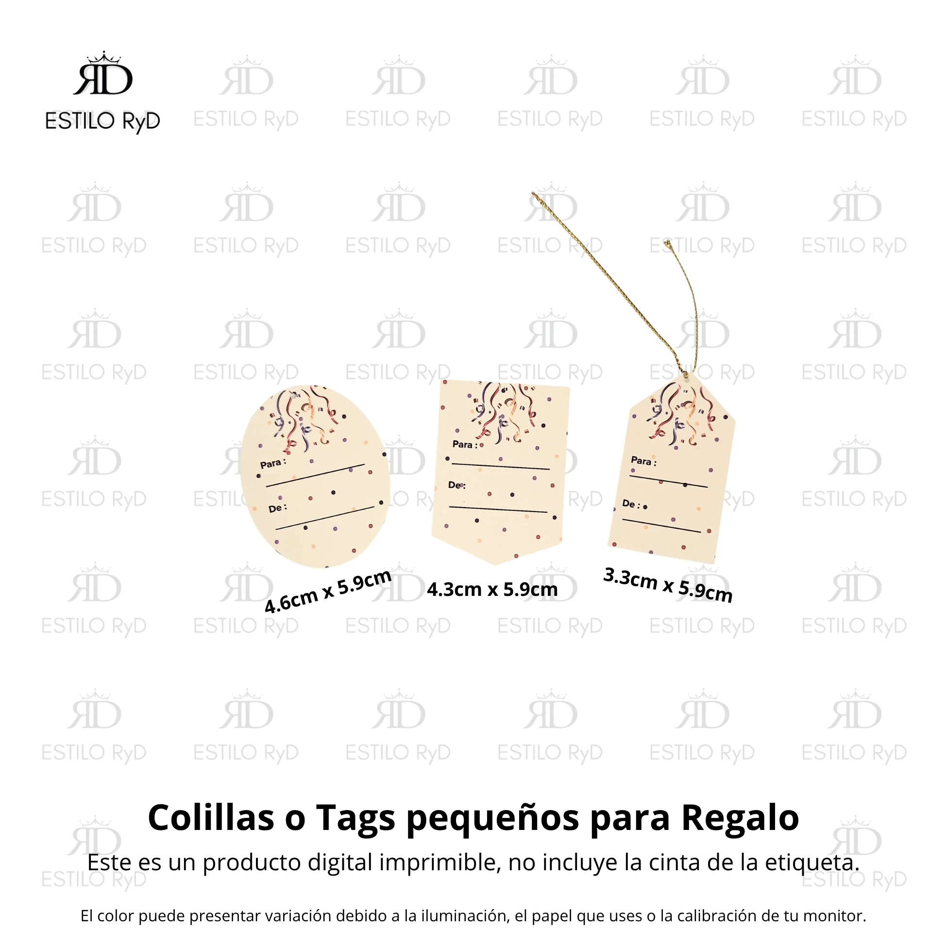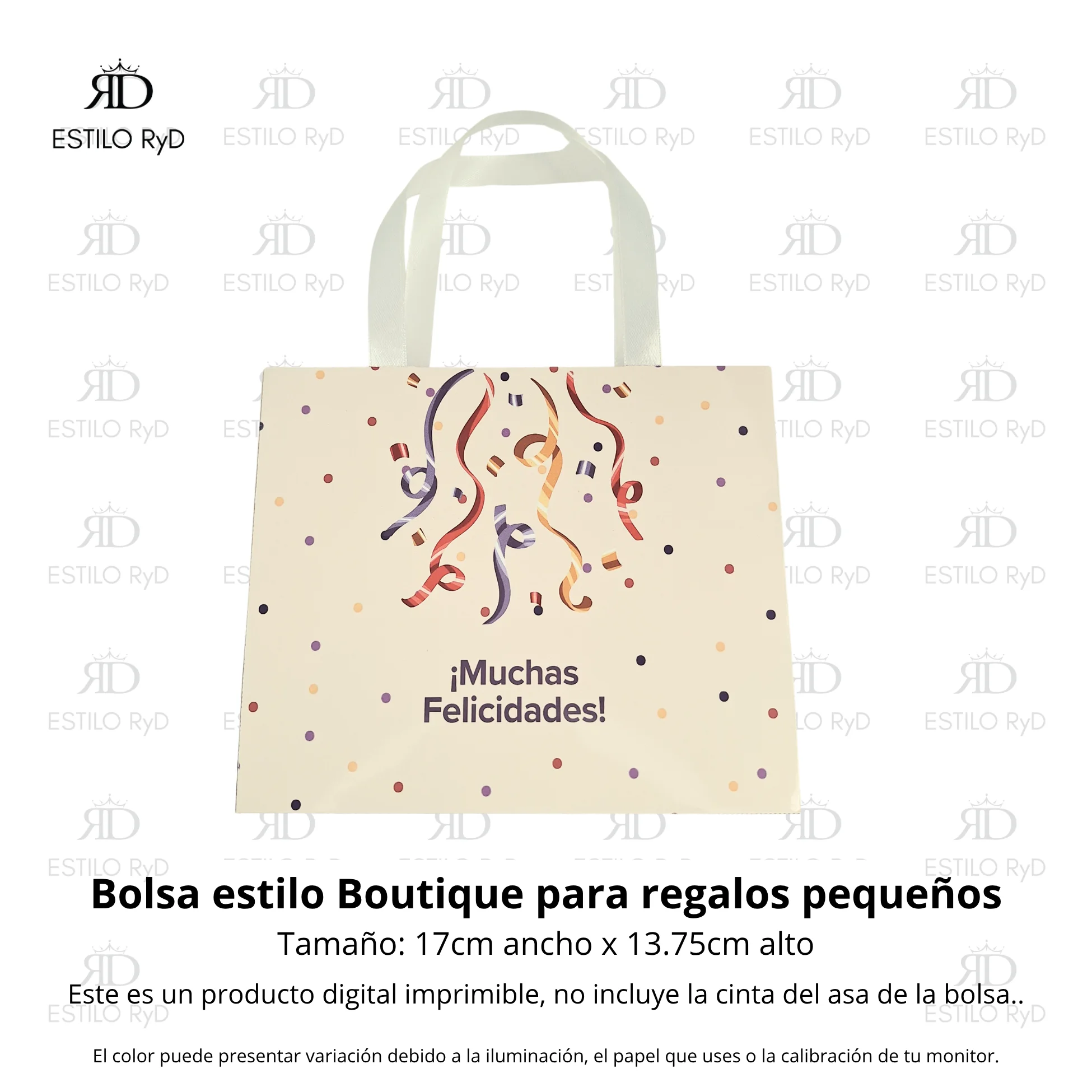 Necesitas imprimir los diseños que deseas del .pdf y para obtener el producto terminado vas a necesitar: tijeras / cutter / bisturí o exacto, goma / pegamento / cinta doble cara, cinta raso para las asas de las bolsitas y el hilo de preferencia para los Tags o Colillas para regalo.