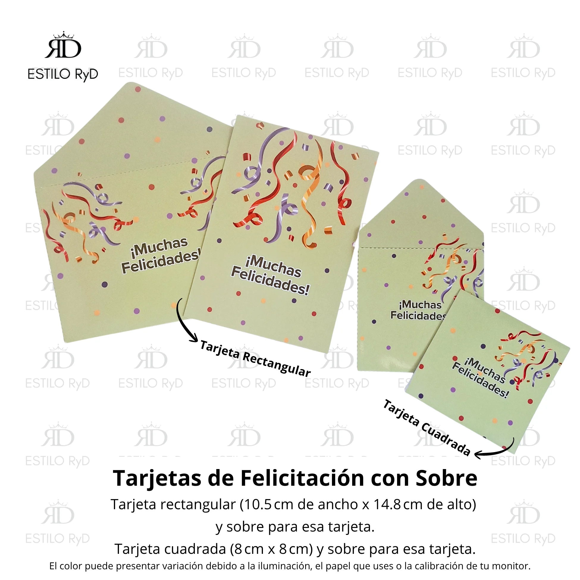 Este diseño con motivos de Serpentinas con fondo olivo claro es versátil, e ideal para dar sinceras felicitaciones en cumpleaños, bodas, aniversarios, graduaciones, nacimientos, ascensos laborales, o al celebrar cualquier otro logro personal o evento feliz.