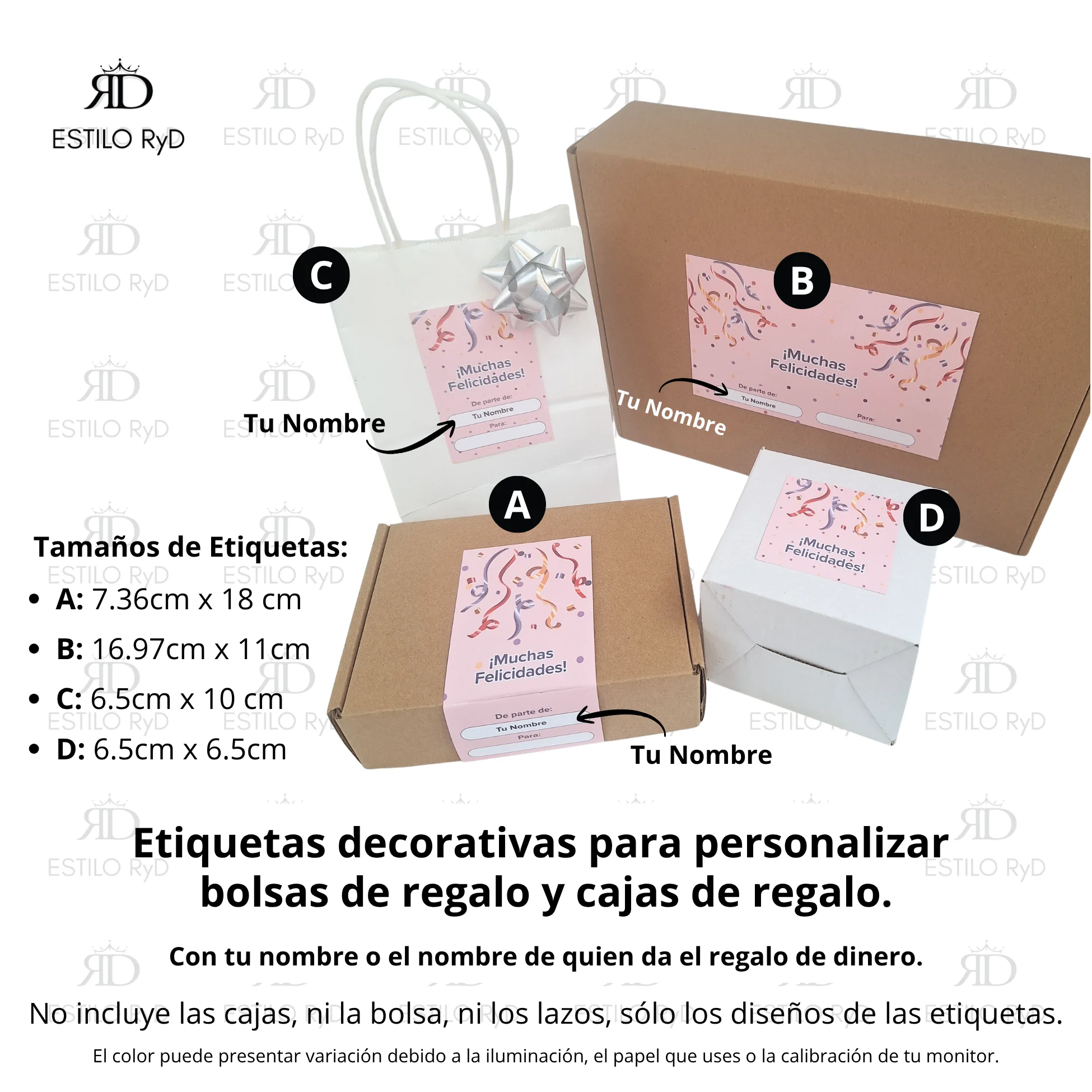 En el caso de las Etiquetas de bolsas y cajas, puedes imprimirlas en papel adhesivo 90gr o 135gr para tu tipo de impresora (Inyección de tinta o láser).